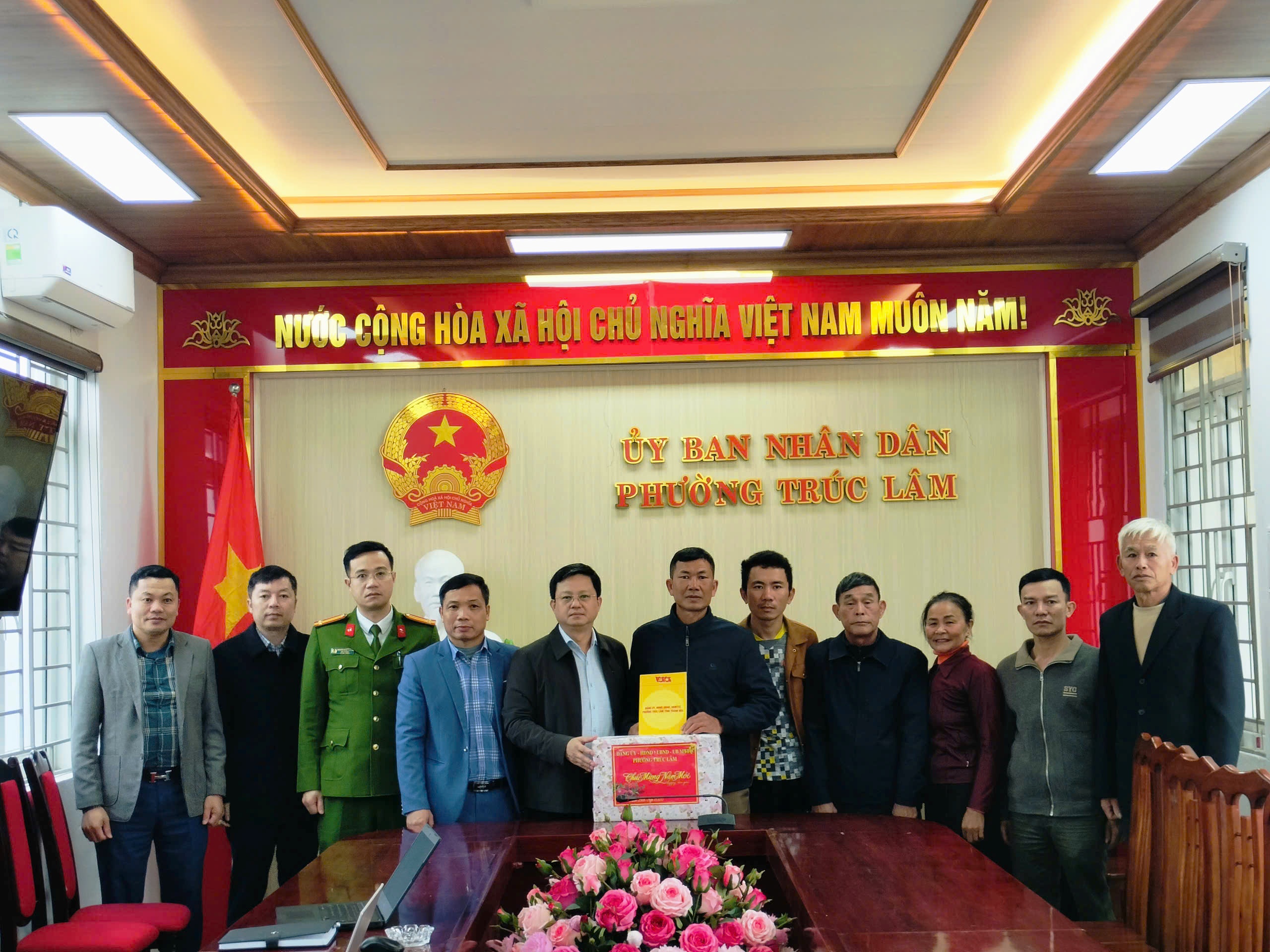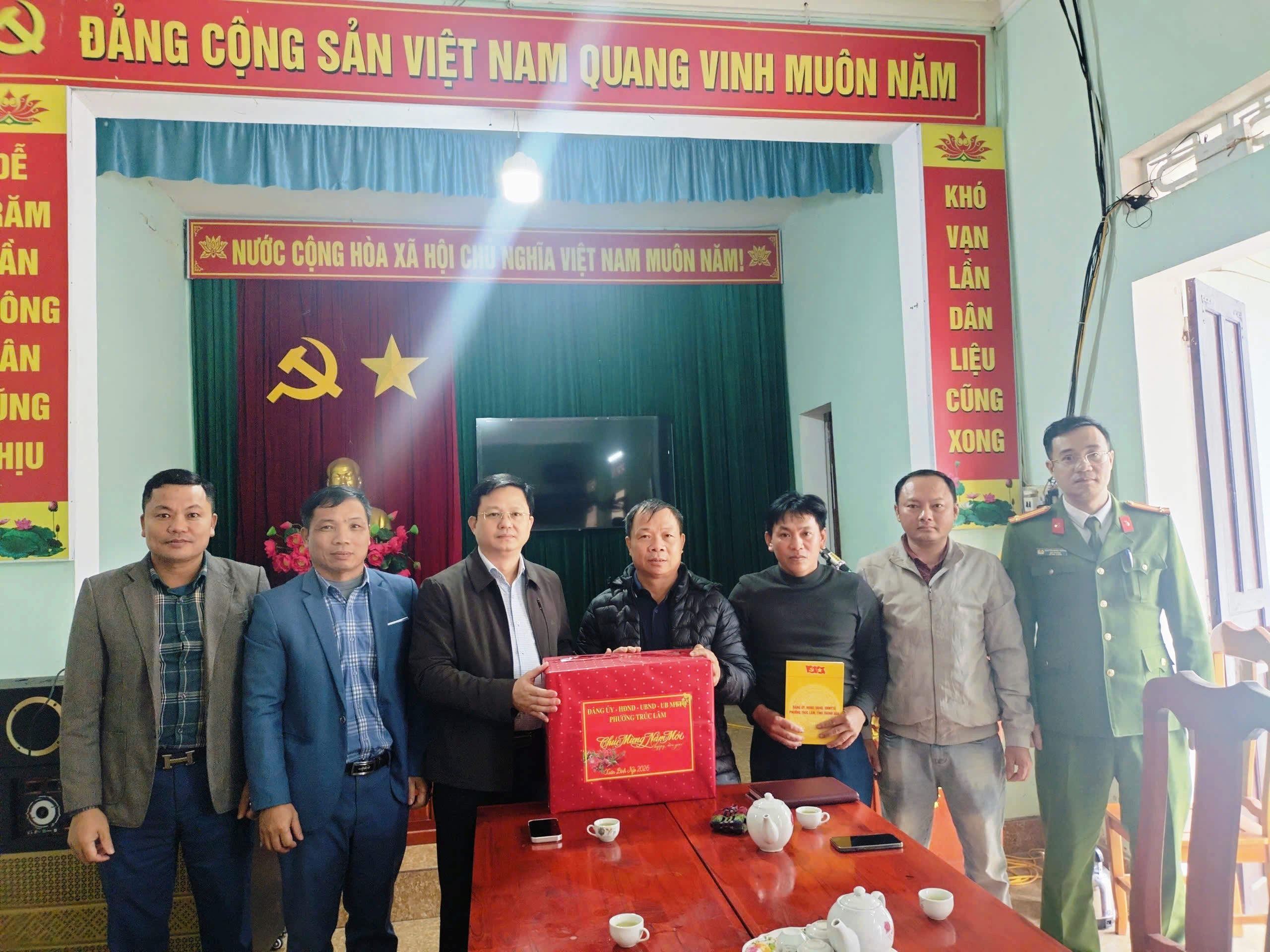 Đồng chí Bùi Tuấn Tự, Bí thư Đảng uỷ, Chủ tịch HĐND phường Trúc Lâm thăm và chúc Tết tổ dân phố Trường Sơn
