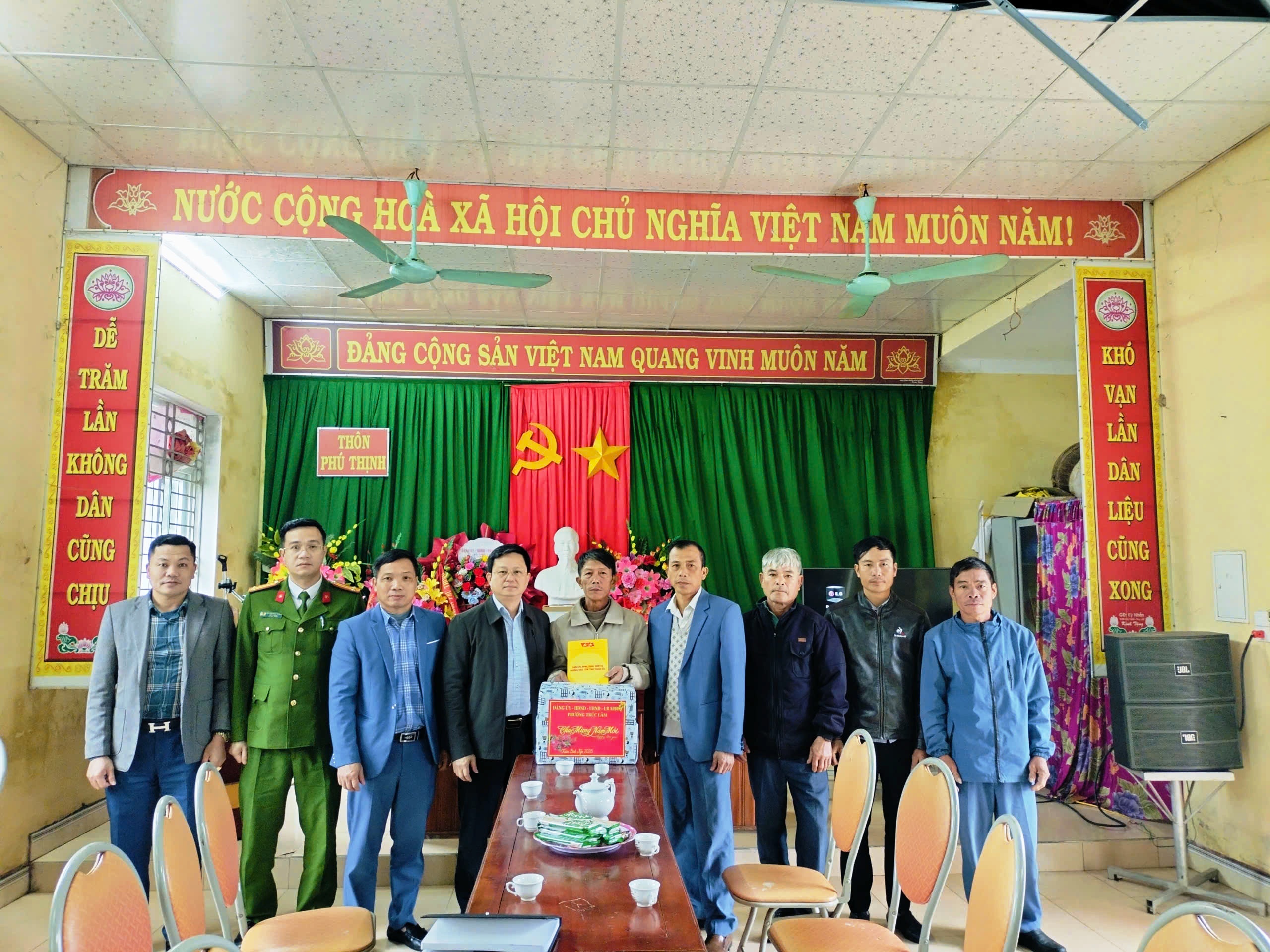 Đồng chí Bùi Tuấn Tự, Bí thư Đảng uỷ, Chủ tịch HĐND phường Trúc Lâm thăm và chúc Tết tổ dân phố Phú Thịnh